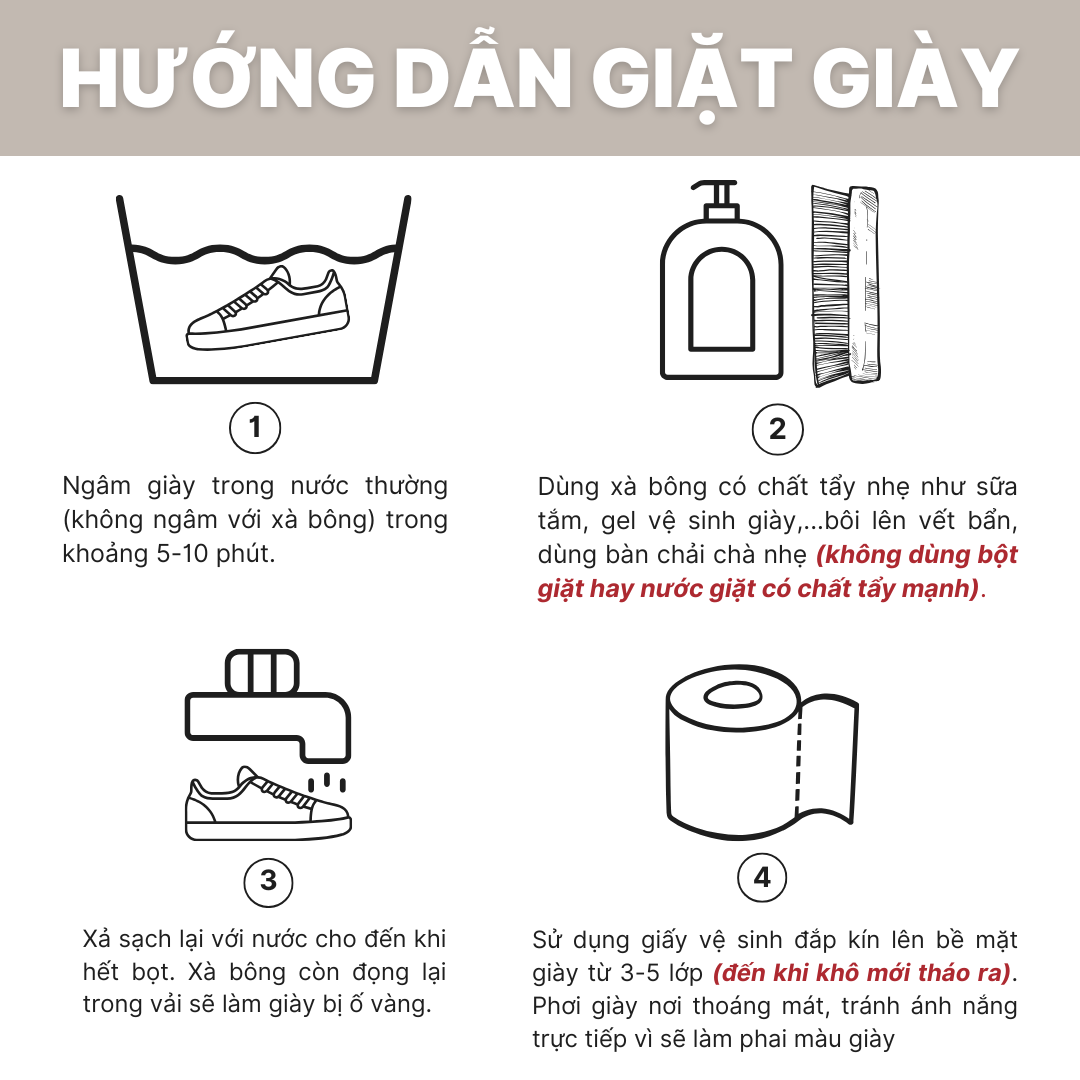 HƯỚNG DẪN GIẶT GIÀY: