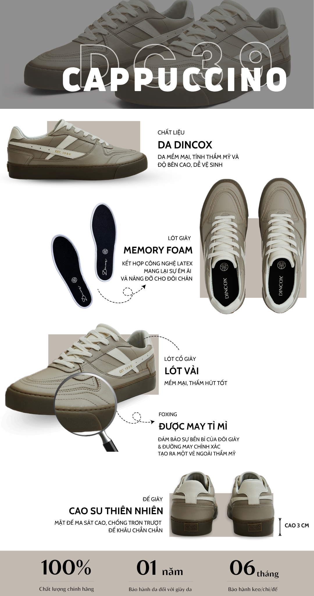 Bảo hành chính hãng (Bảo hành keo 06 tháng, bảo hành da 1 năm)