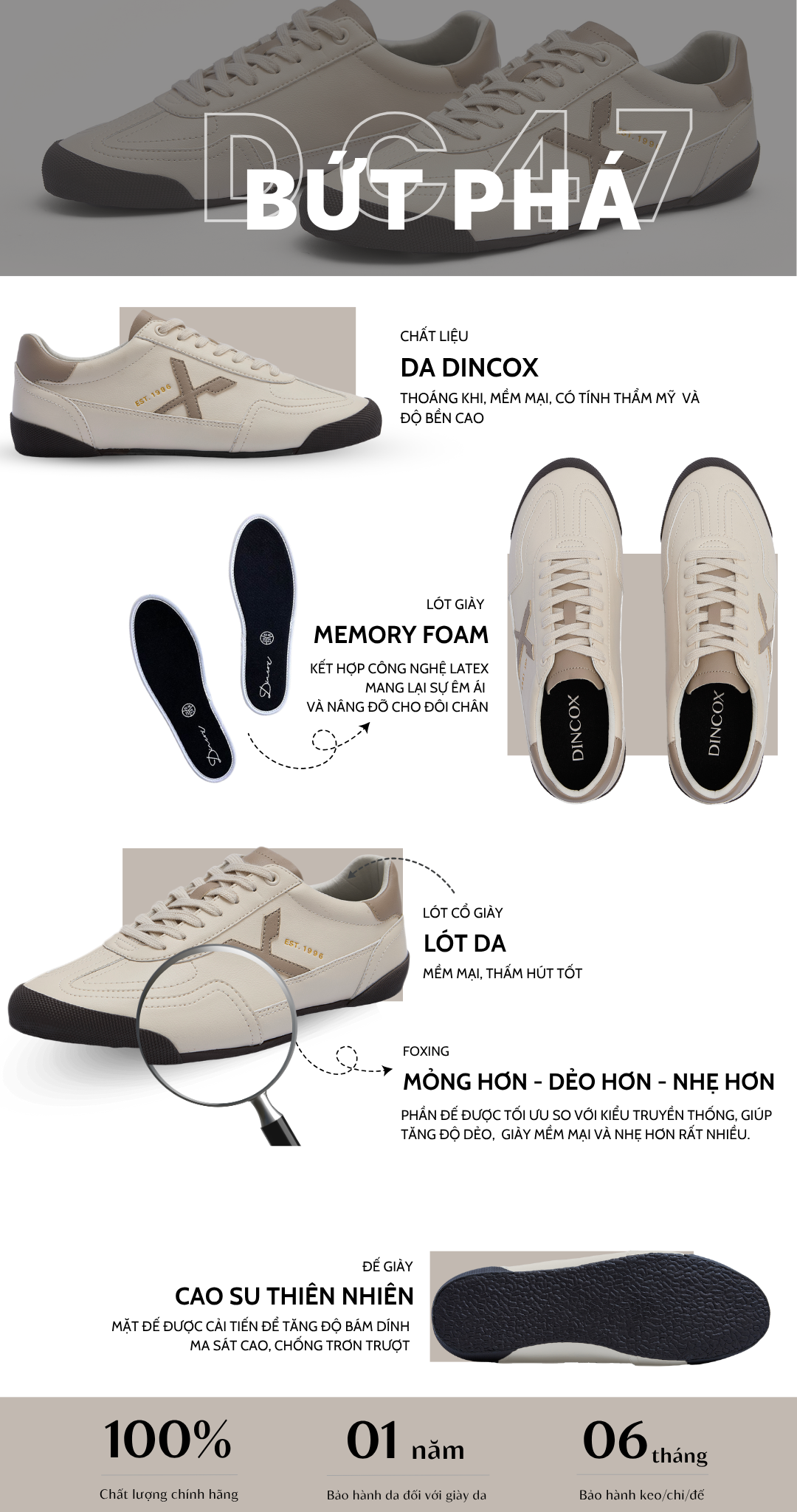 Bảo hành chính hãng (Bảo hành keo 06 tháng, bảo hành da 1 năm)