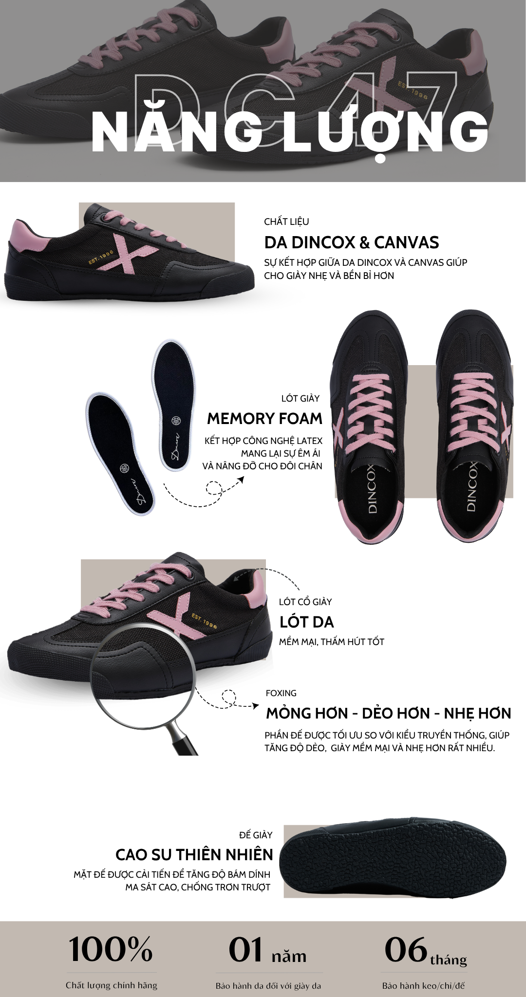 - Sản phẩm nằm trong mục FLASH SALE, DinCox sẽ KHÔNG HỖ TRỢ ĐỔI SIZE, KHÔNG BẢO HÀNH trong mọi trường hợp