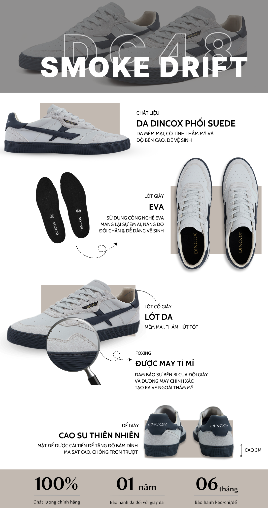 Bảo hành chính hãng (Bảo hành keo 06 tháng, bảo hành da 1 năm)