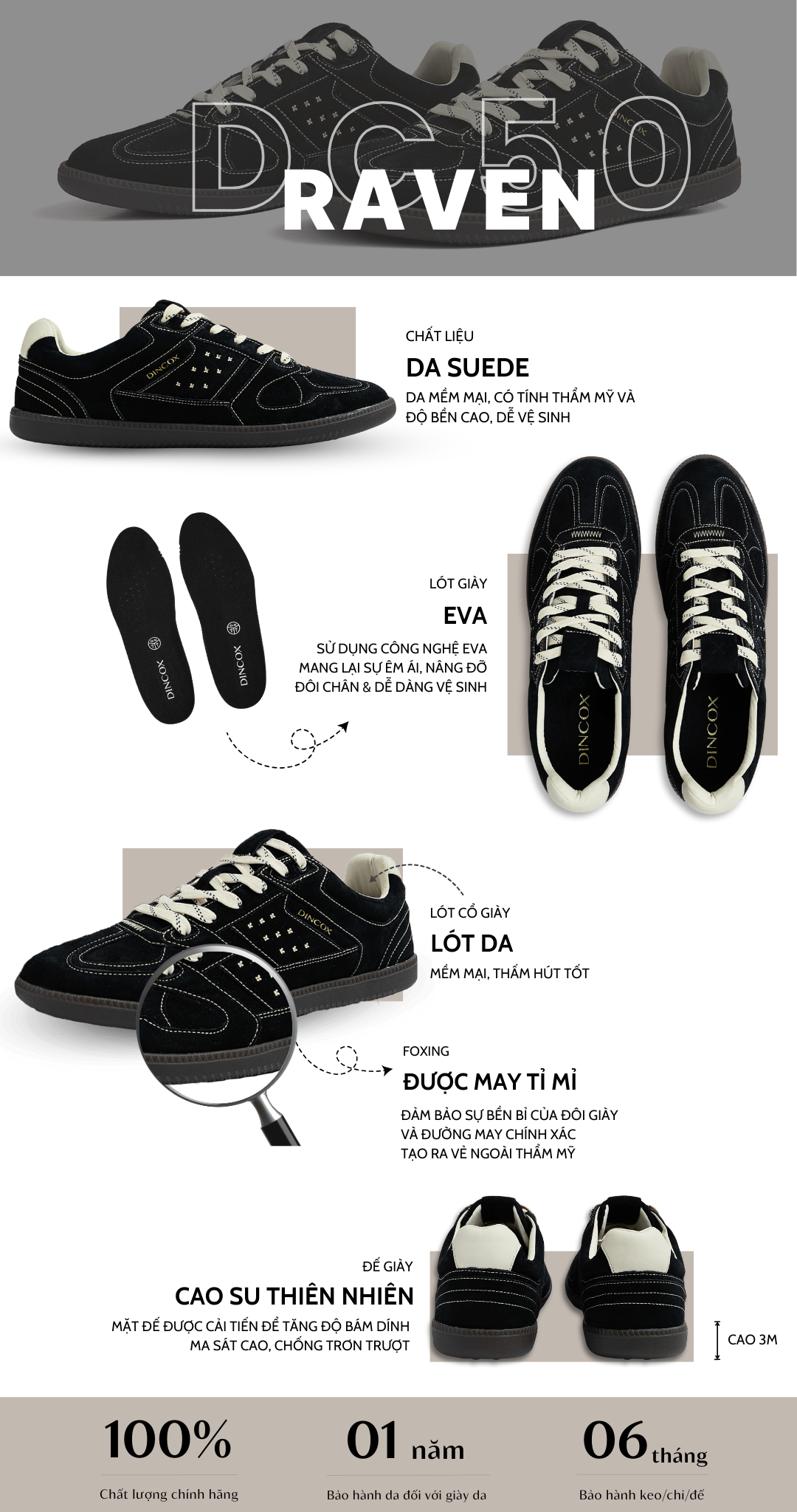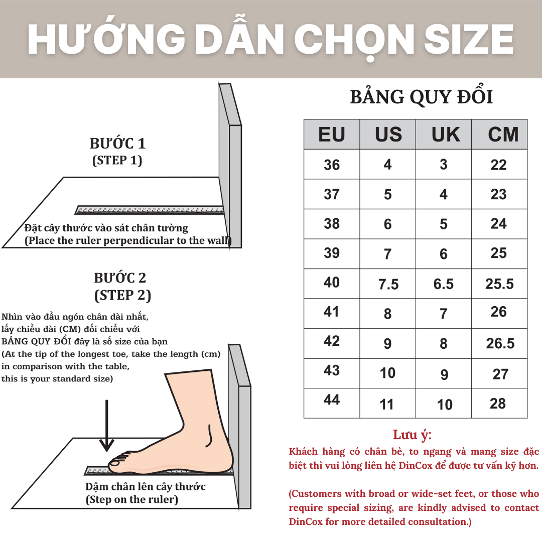 - Sản phẩm nằm trong mục FLASH SALE, DinCox sẽ KHÔNG HỖ TRỢ ĐỔI SIZE, KHÔNG BẢO HÀNH trong mọi trường hợp