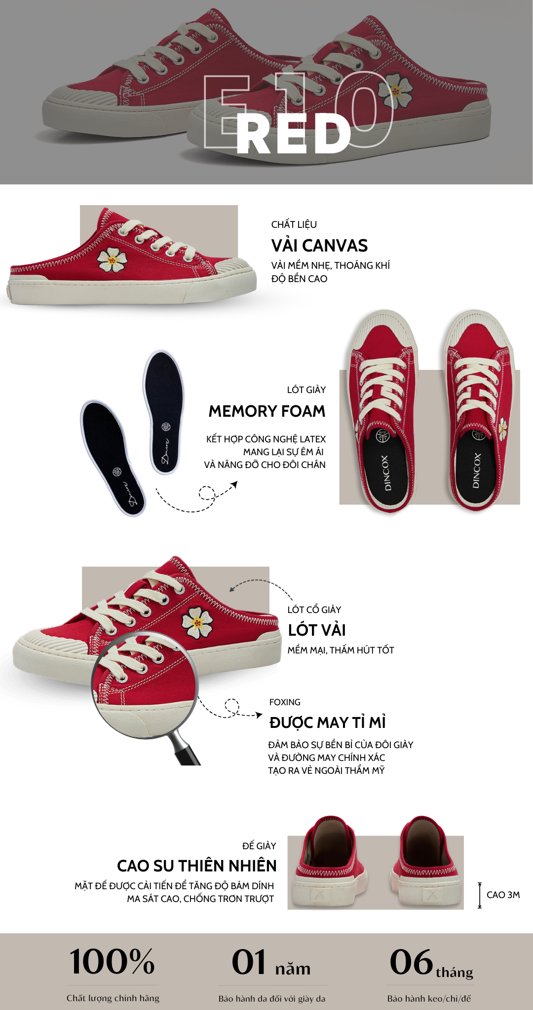 Bảo hành chính hãng (Bảo hành keo 06 tháng, bảo hành da 1 năm)